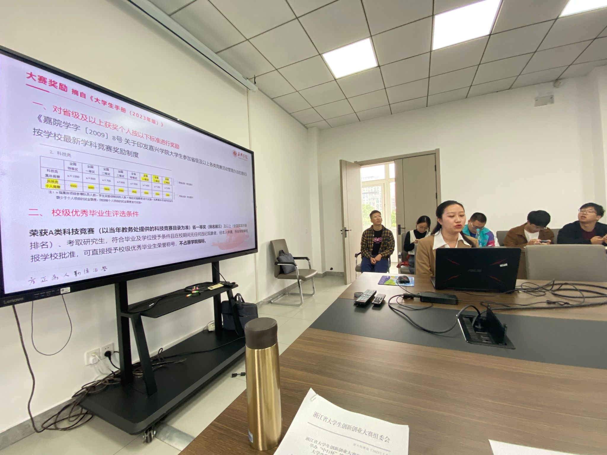 朱莹应邀作经验分享,她以“我就是我的作品”为题介绍了大赛的概念和目标意义,分享了自身参赛的感悟经验,并从文本撰写技巧等多个方面对备赛、参赛的注意事项进行了细致指导。建议同学们根据自己的专业特长和知识结构,从实际出发选择赛道、打磨作品