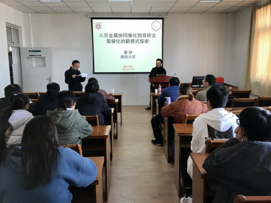 12月12日上午,在梁林校区1号楼506学术报告厅,南京大学谢劲教授来公司作题为《从双金属协同催化到双核金属催化的新模式探索》的学术报告。