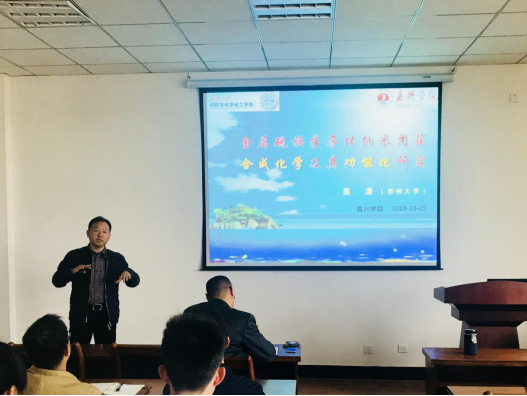 10月25日下午,在梁林校区1号楼506学术报告厅,苏州大学特聘教授吴涛来公司作题为《金属硫族半导体纳米团簇的合成化学及功能化研究》的学术报告。