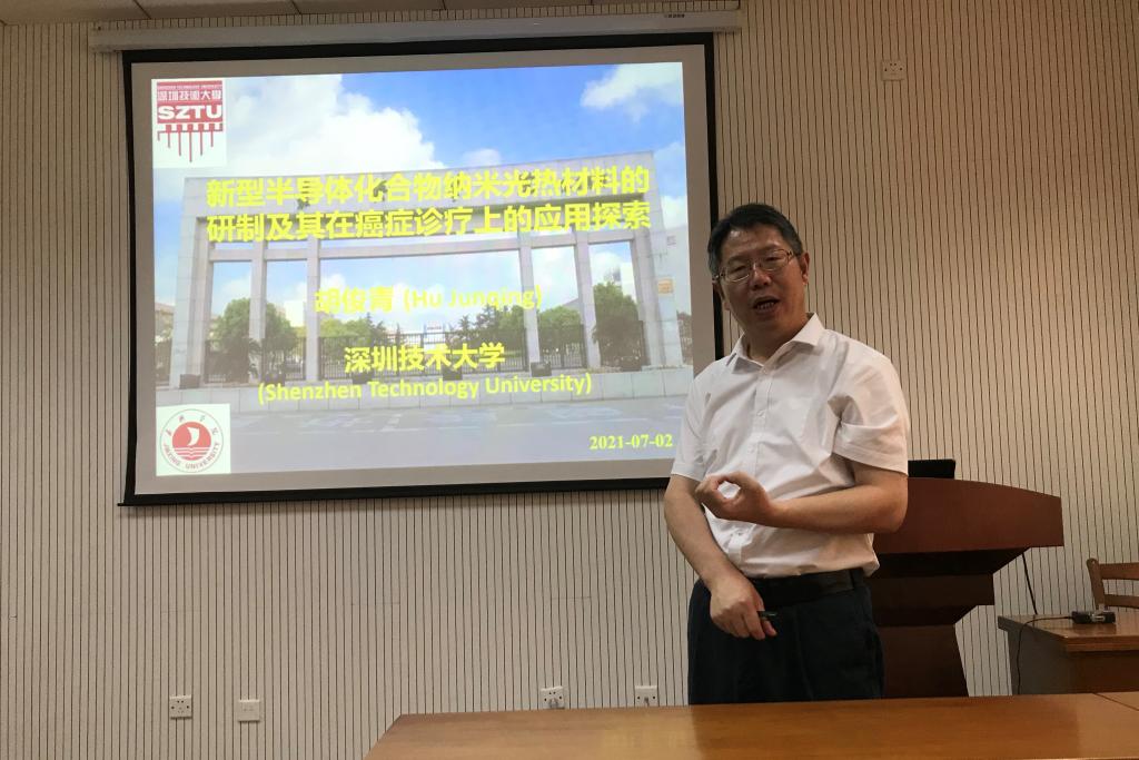 7月2日上午,应永利65335com邀请,深圳技术大学健康与环境工程公司经理胡俊青一行来访,并作题为“新型半导体化合物纳米光热材料的研制及其在癌症诊疗上的应用探索”的学术报告,公司刘小明教授主持讲座,全院师生30余人到场聆听。