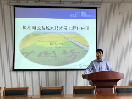 10月15日上午,上海化工研究有限公司教授级高工李泓来公司作题为《电脱盐技术在油田、炼油厂应用》的学术报告。