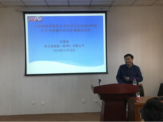 12月10日下午,普乐新能源(蚌埠)有限责任公司总裁孙嵩泉博士来公司作题为《半导体隧穿技术及应用和设备》的学术报告。