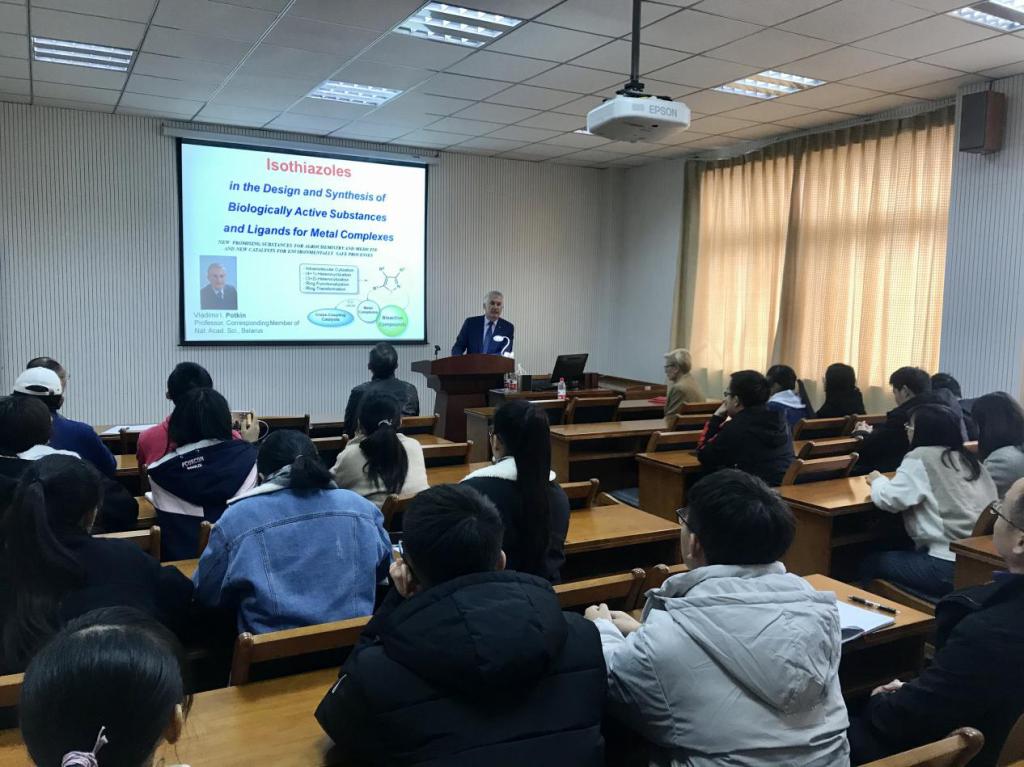 11月29日(周五)下午,在梁林校区1号楼506学术报告厅,白俄罗斯国家科公司Vladimir Potkin院士来公司作题为In the Design and Synthesis of Biologically Active Substances and Ligands for Metal Complexes的学术报告。
