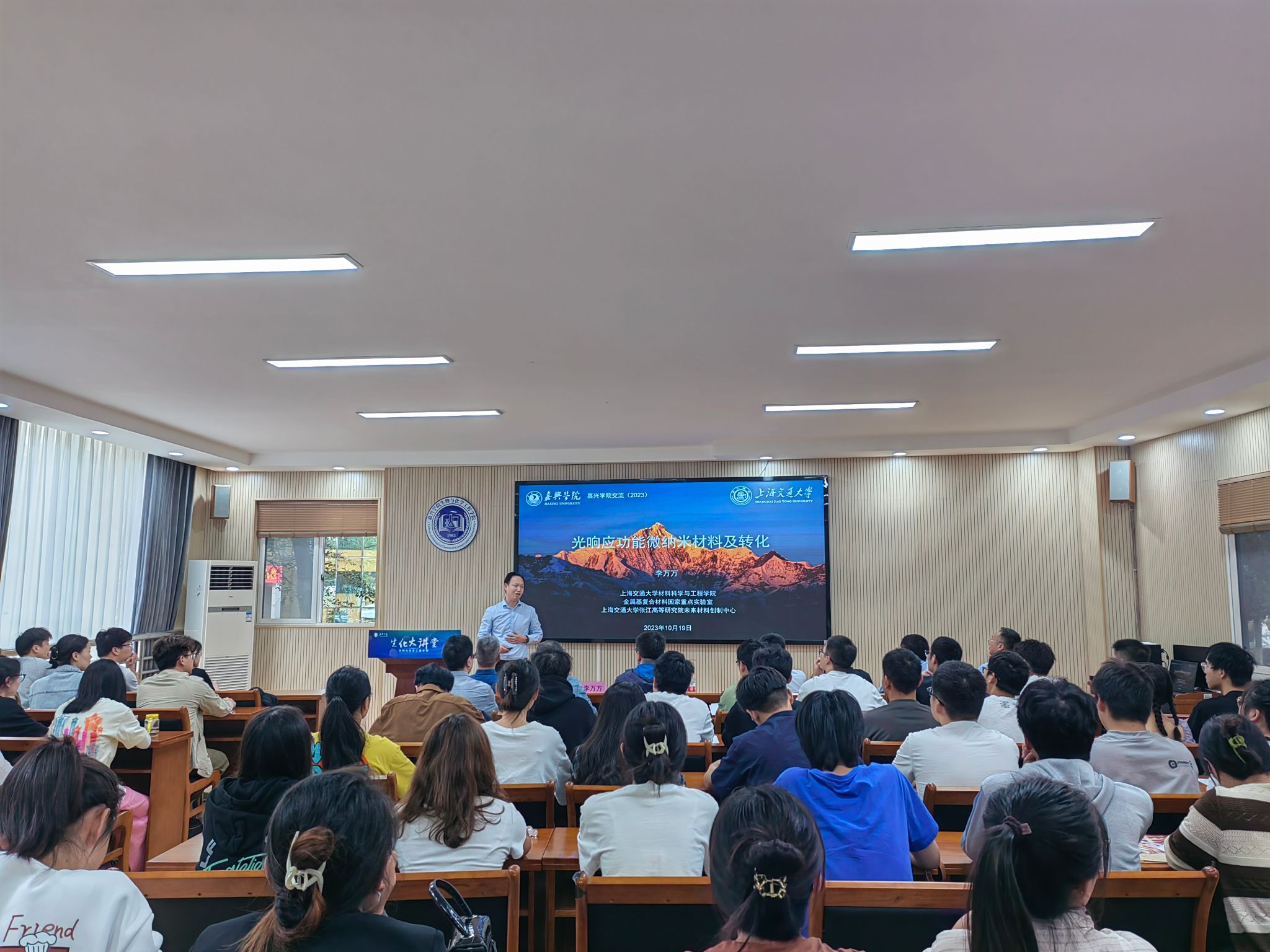 10月19日下午,公司举办“生化大讲堂”第二十四期学术交流会,本次大讲堂特邀请上海交通大学材料科学与工程公司首席研究员、博士生导师李万万作题为“光响应功能微纳米诊疗材料及转化”的学术报告。会议由公司郭隆华教授主持,全院及中澳先进材料与制造研究院师生70余人到场聆听。