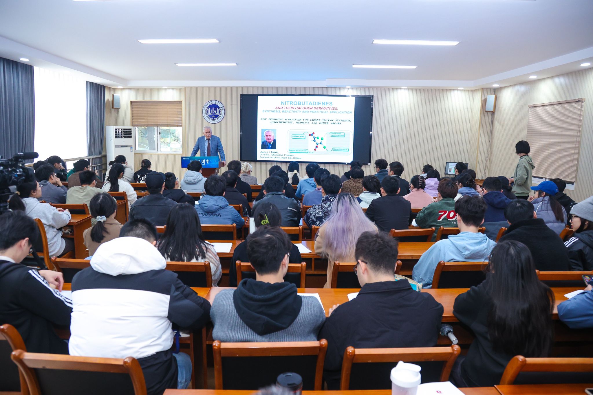 1116日下午,​公司举办“生化大讲堂”第二十六期学术交流会,本次大讲堂特邀请白俄罗斯国家科公司院士波特金Vladimir Potkin)作题为“硝基丁二烯及其卤素衍生物:合成、反应性以及实际应用——靶向有机合成、农化、医药等领域的新兴物质”的学术报告。会议由邱观音生教授主持,全院及中澳先进材料与制造研究院师生80余人到场聆听。