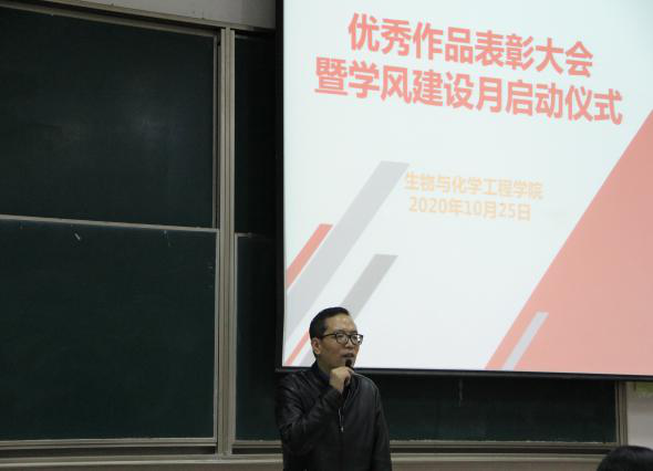 25日晚上,成果展参评获奖作品表彰大会在13号楼报告厅举行,永利65335com经理周宏伟、副书记蔡运男、公司特聘教授郭隆华,以及公司100余名在校生参加了表彰大会。周经理在会上发表讲话,他首先对本次活动的组织给予肯定,并向在活动中取得优秀成绩的团队和员工个人表示祝贺。周经理强调,本次活动的组织,既是对同学们前期科研成果的肯定,也是对员工科研项目的一种培育,希望同学们在今后科研道路上更加勤于思考、勇于创新,争取在省赛和国赛平台上取得更好的成绩。