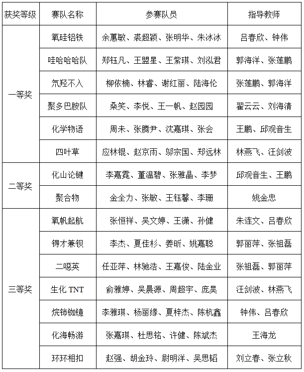 嘉兴公司参加第十一届浙江省老员工化学竞赛获奖名单