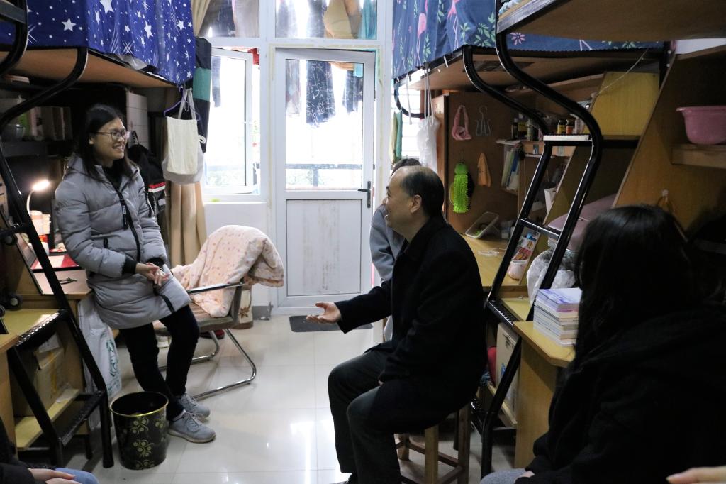 员工的住宿情况一直是校领导关注的重点,寝室卫生与安全稳定尤为重要,书记强调同学们要以校为家,专心学习,营造寝室积极的良好氛围,创造温馨的生活环境。