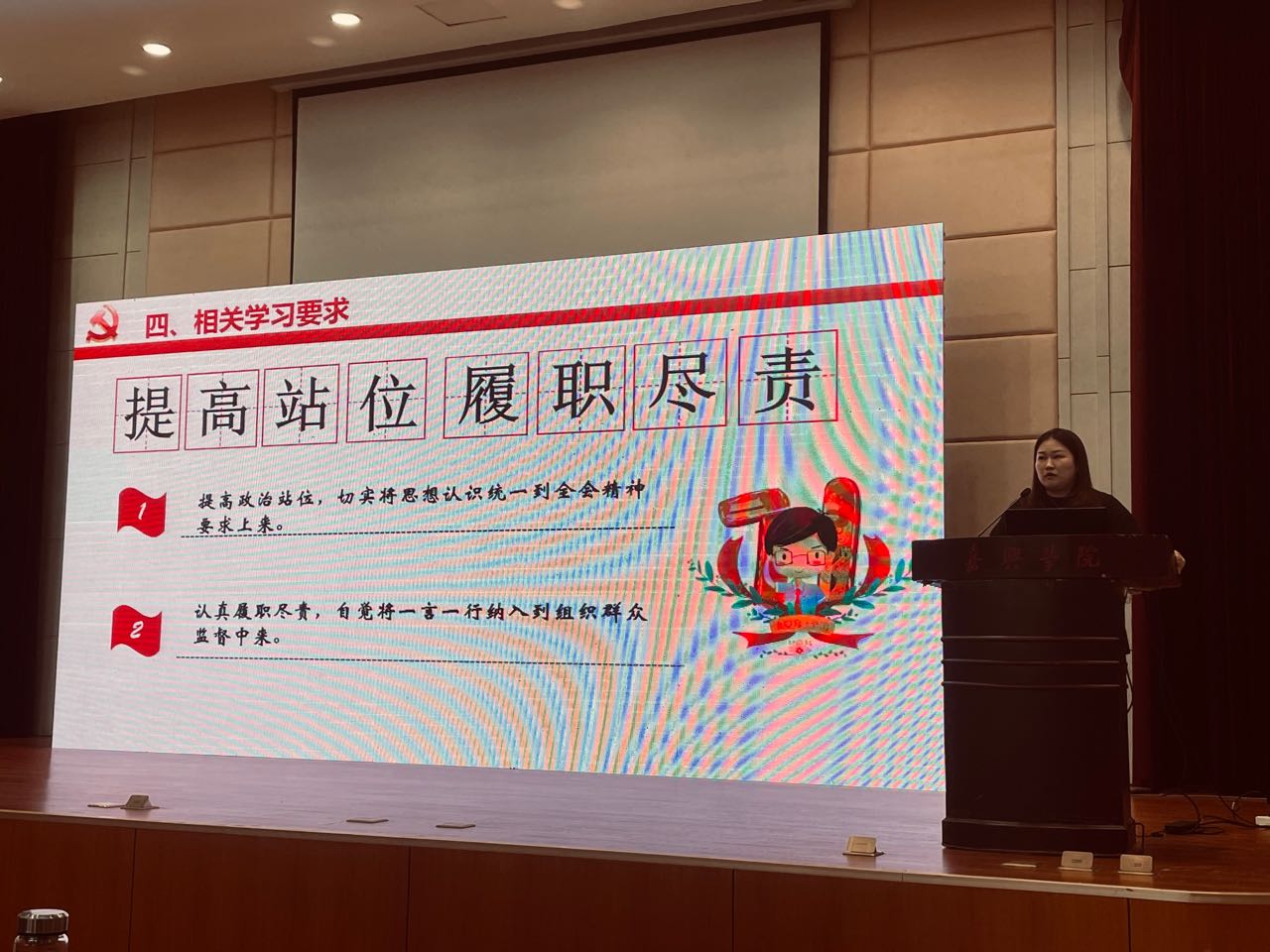 副经理曹红从专业认证、专业分流、转专业、期末考试等方面作具体部署;副经理张瑾通报近期实验室安全检查情况,针对实验室药物存放、科研信息统计、研究生招生等事项进行相关部署;党委副书记、纪委书记蔡运男结合员工暑期留校管理、毕业生就业等工作作重点强调,并组织全体教职工进行政治理论学习,深入学习十九届中央纪委五次全会精神,提出了“提高站位、履职尽责”的学习要求。