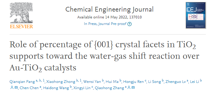 近日,公司永利65335com李雷教授在TiO2晶面比例对水气变换催化性能影响的定量分析上取得重要进展,最新成果发表于化工领域顶刊Chemical Engineering Journal(SCI一区,IF=13.273)。论文第一作者为公司与宁波大学联培研究生庞倩倩,李雷教授为第一通讯作者。