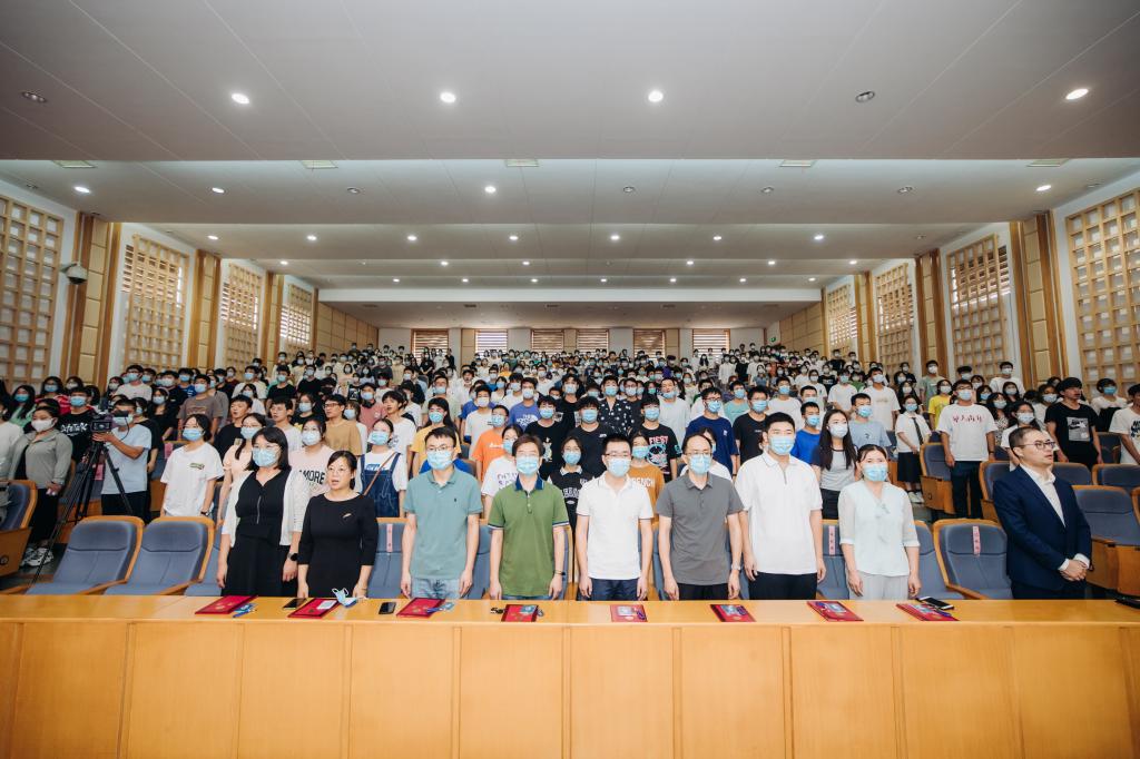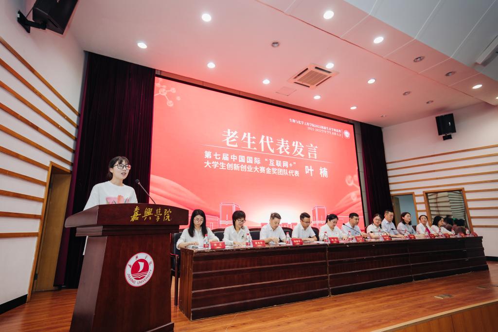 生物222班罗莹、第七届中国国际“互联网+”老员工创新创业大赛金奖获奖团队代表叶楠作为新生、老生代表进行发言,表示将用实际行动践行“请党放心,强国有我”的铿锵誓言,努力争做堪当民族复兴重任的先锋队、突击队、攻坚队。