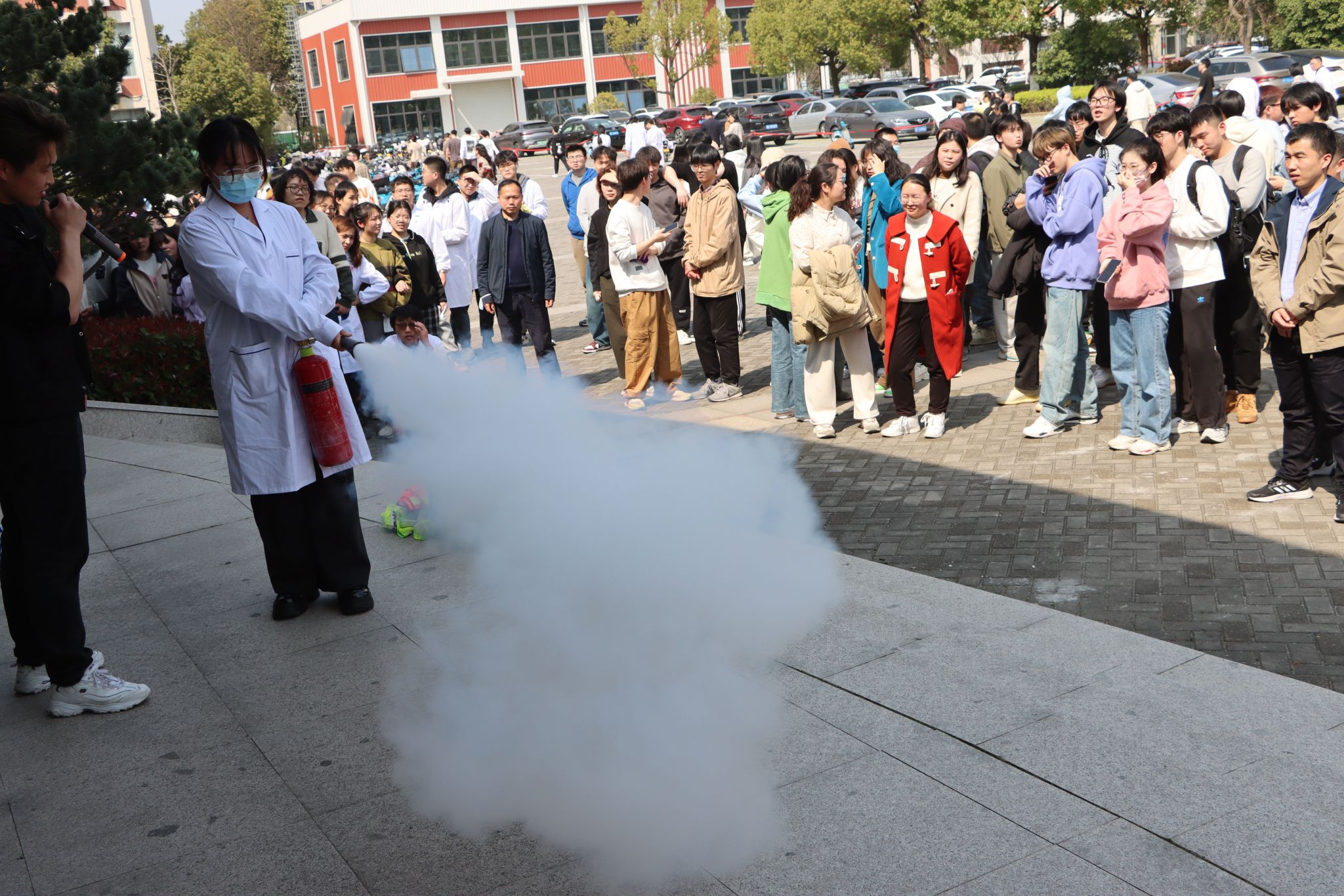 集团保卫处消防管理科丁伟老师对此次疏散演练活动进行了点评,他表示全体师生第一时间安全有序全部撤离到安全区域,说明此次火灾逃生演练活动比较成功,达到了预期效果。丁伟在现场示范了灭火器等消防器材的正确使用方法,参加演练的部分师生进行了实践操作。