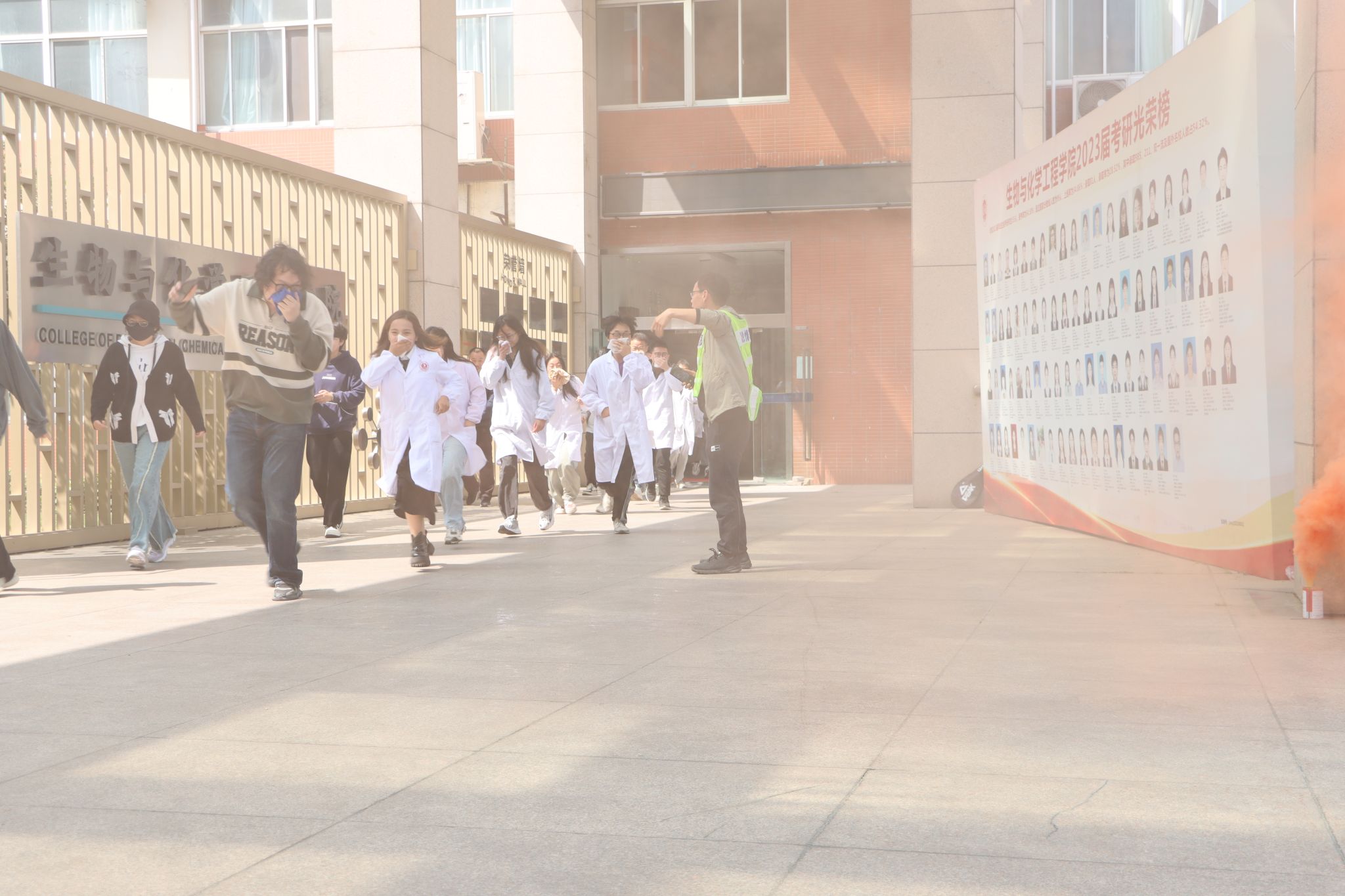 在演练开始前,根据制定的工作方案,全体师生学习消防安全知识、消防器材使用方法以及演练注意事项,确保本次活动取得实效。下午13:30分,随着急促的火灾警报铃声响起,全体师生严格按照演练预案有序疏散。在疏散引导员的引导下,师生们用毛巾捂住口鼻、俯身弯腰前行,按照消防安全逃生路线,通过消防通道快速有序撤离危险区域。疏散过程秩序井然,从警报响起到全体师生集中到达安全地点,整个过程不到3分钟。随后,工作人员清点人数,确保“不漏一人”。
