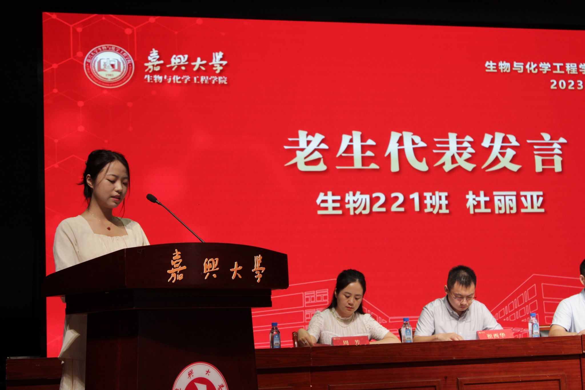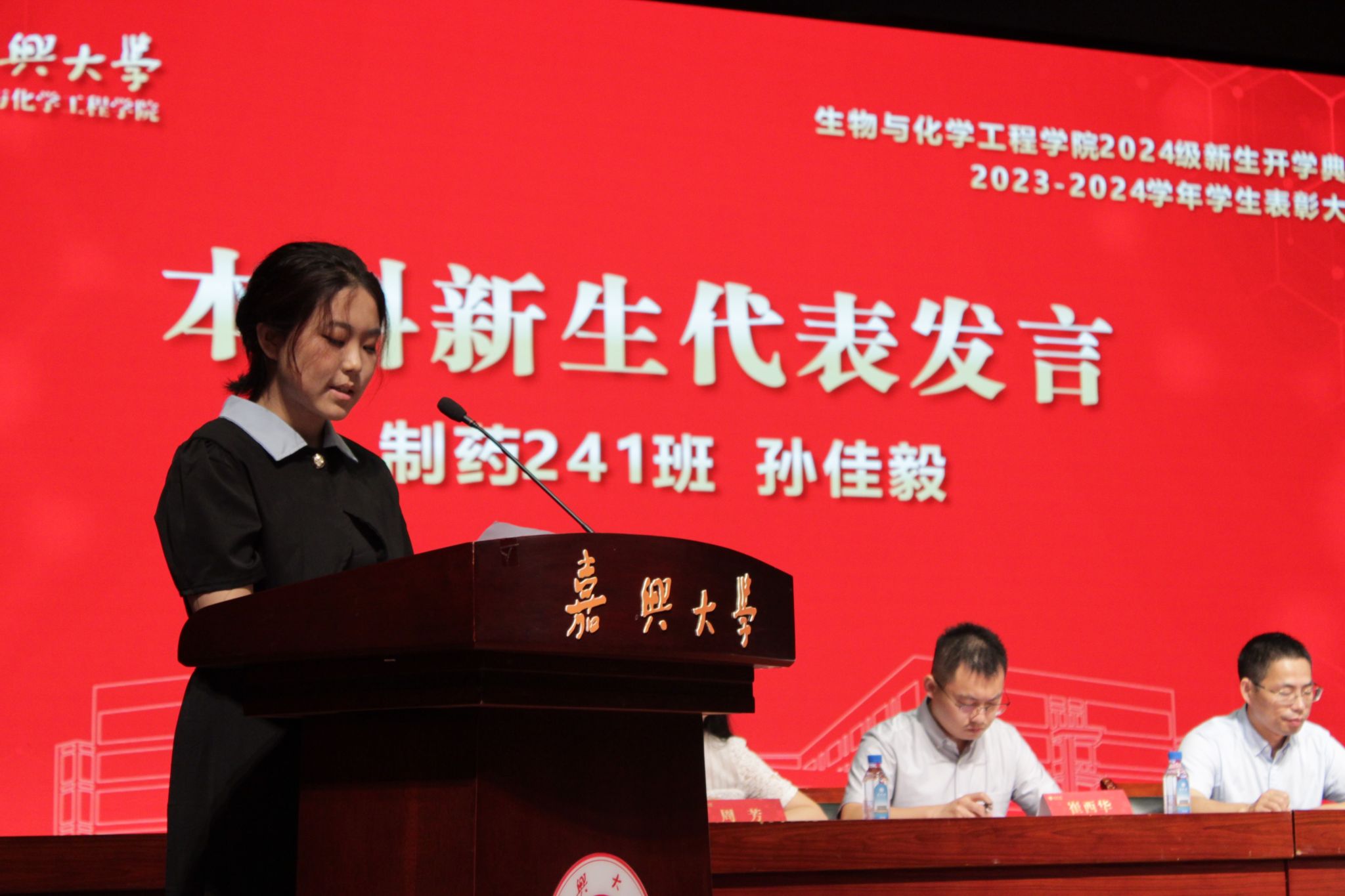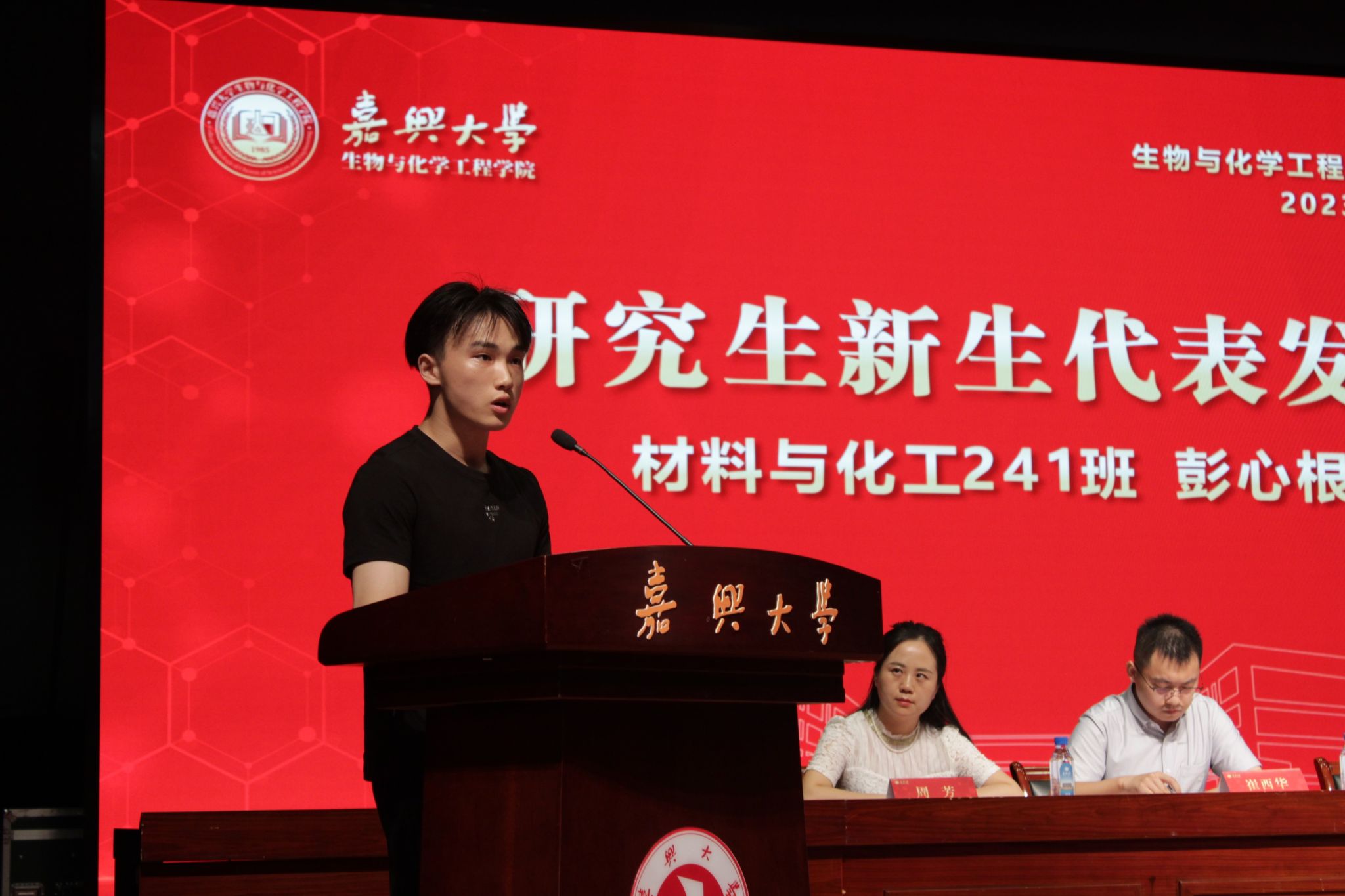 材料与化工专业24级研究生彭心根、制药专业24级本科生孙佳毅、生物221班杜丽亚分别代表研究生、本科新生、在校生进行发言。他们表示,作为中国革命起航地红船旁的老员工,他们将在立志笃行中胸怀“国之大者”,在躬身力行中修炼扎实学识,承担使命、读书创新、追逐梦想,在新的起点上奋力跑出这一代人的最好成绩。