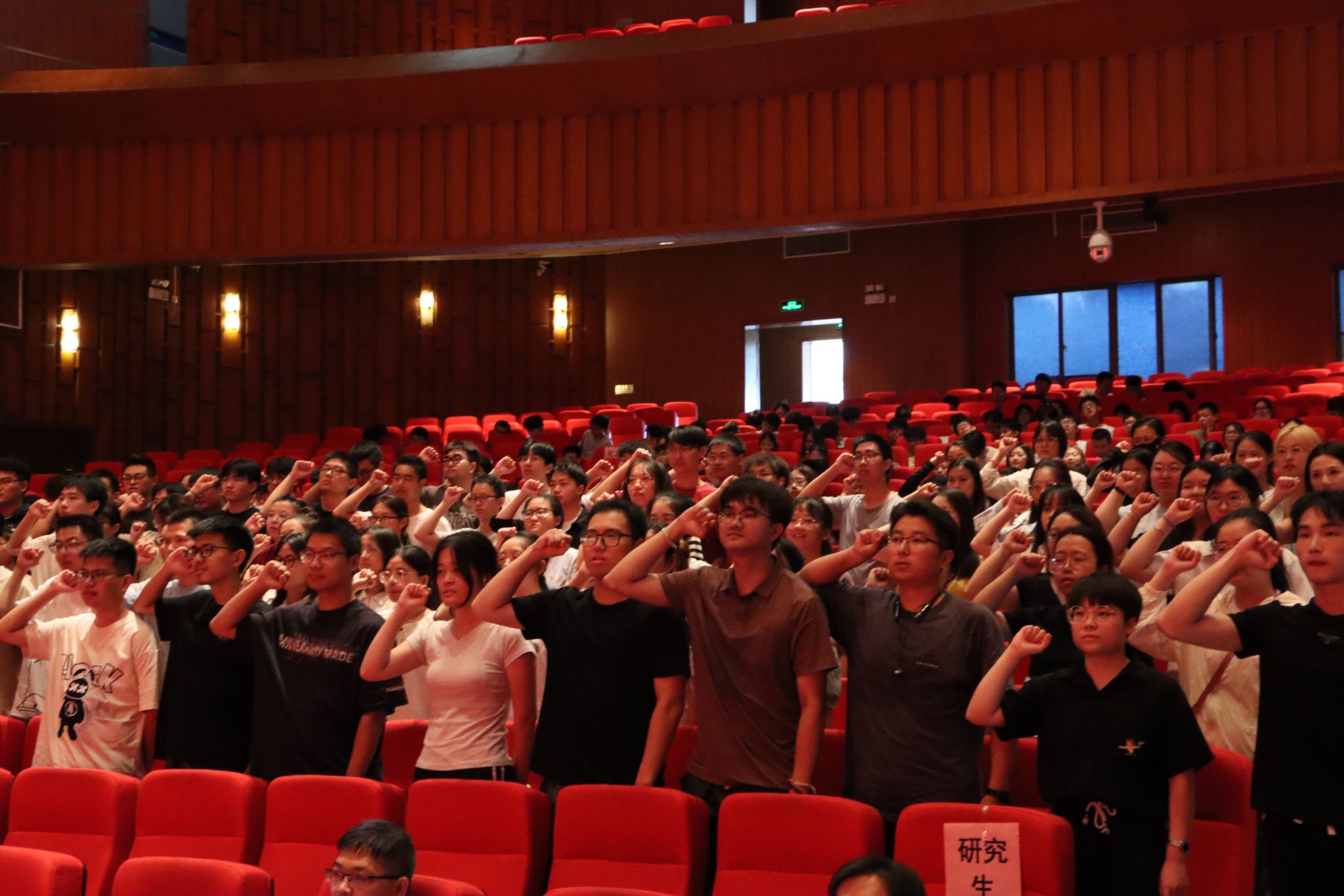 在研究生学术诚信宣誓环节中,全体24级研究生新生满怀着对未来学习生活的憧憬和信心,举起右拳许下誓言:“做优良学风建设的推动者,高尚学术道德的践行者,优良学术风气的引领者”,向全院师生作出了庄严承诺。