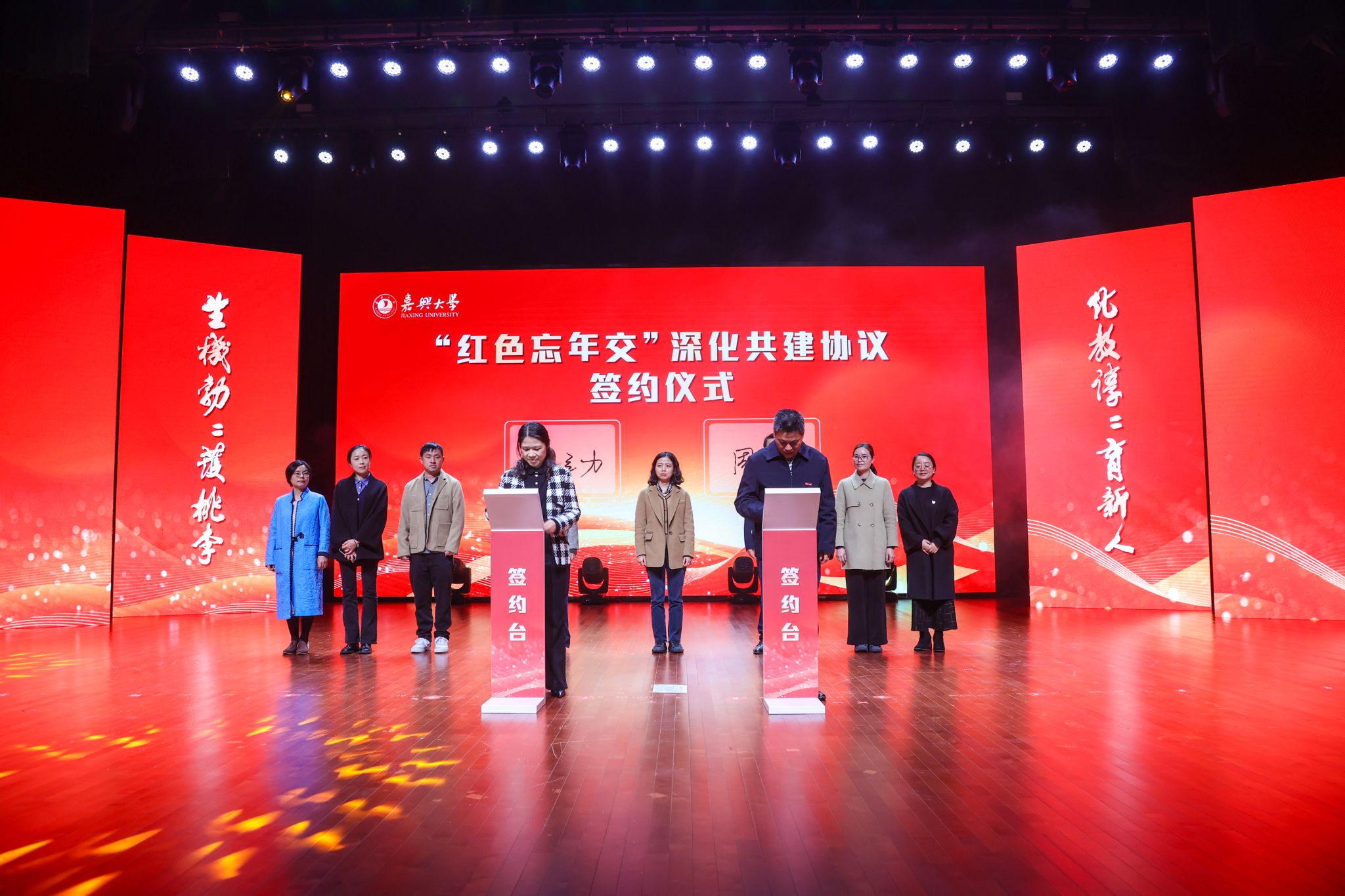 会上,陈立力与周军代表校会双方签订了“红色忘年交”深化共建协议;公司党委负责人为嘉兴市新四军历史研究会宣讲团的老同志颁发了校外辅导员聘书;张红宇为永利65335com老员工“红军连”授旗。