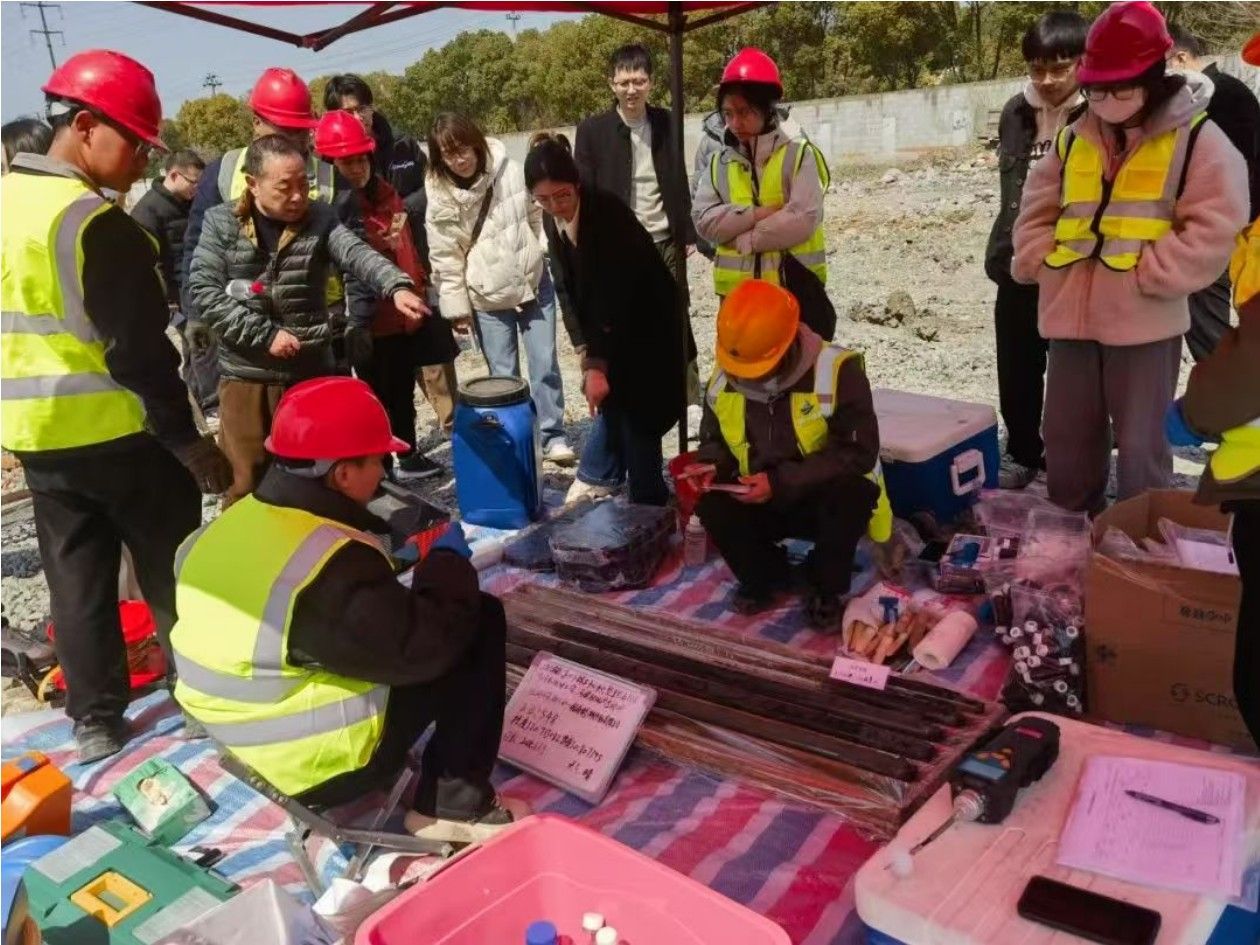 学员们现场观摩了公司《嘉兴市锦丰纺织整理有限公司地块土壤污染治理项目》土壤及地下水全流程样品采集工作,包括钻探、建井、取样、保存与流转等环节。