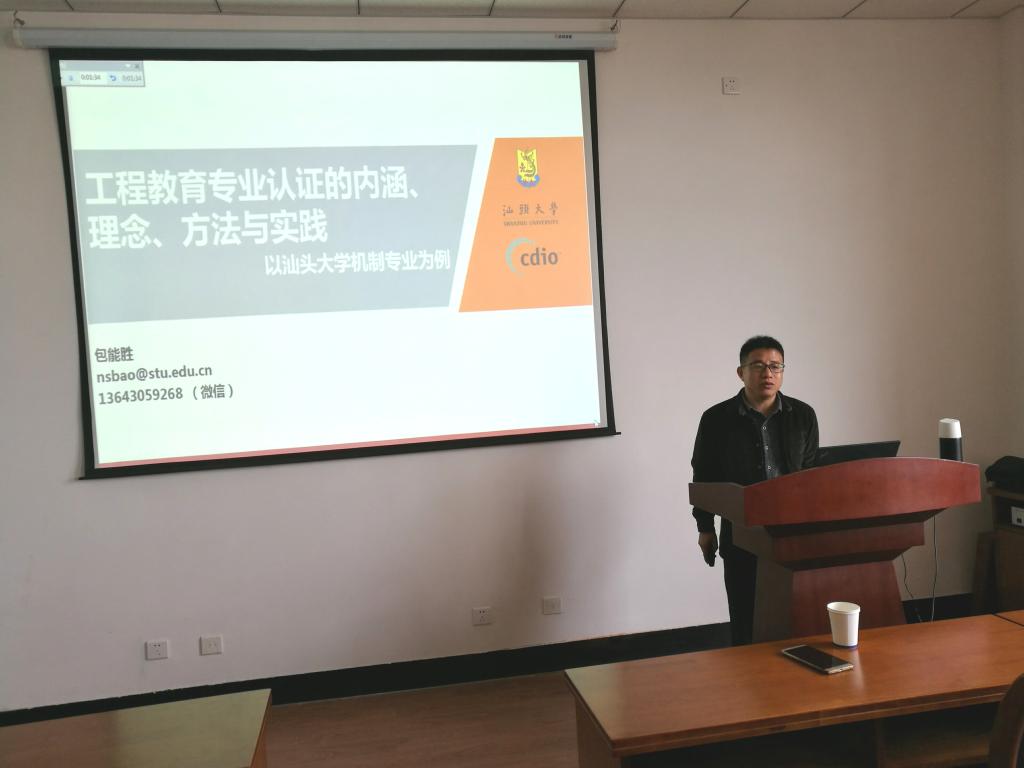 1126日上午9:00,公司邀请汕头大学工公司副经理包能胜教授在1号楼506报告厅开展了题为“工程教育专业认证的内涵、理念、方法与实践”的讲座。公司党政领导、部分专业建设小组成员、课程组负责人、三办主任参加了讲座。
