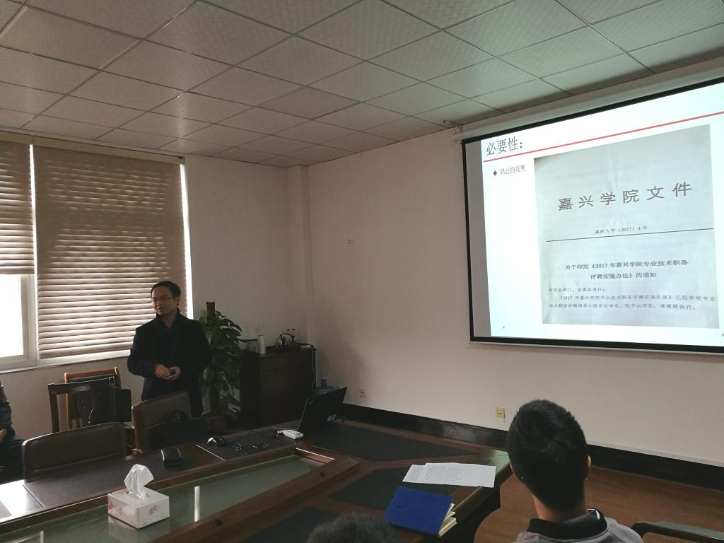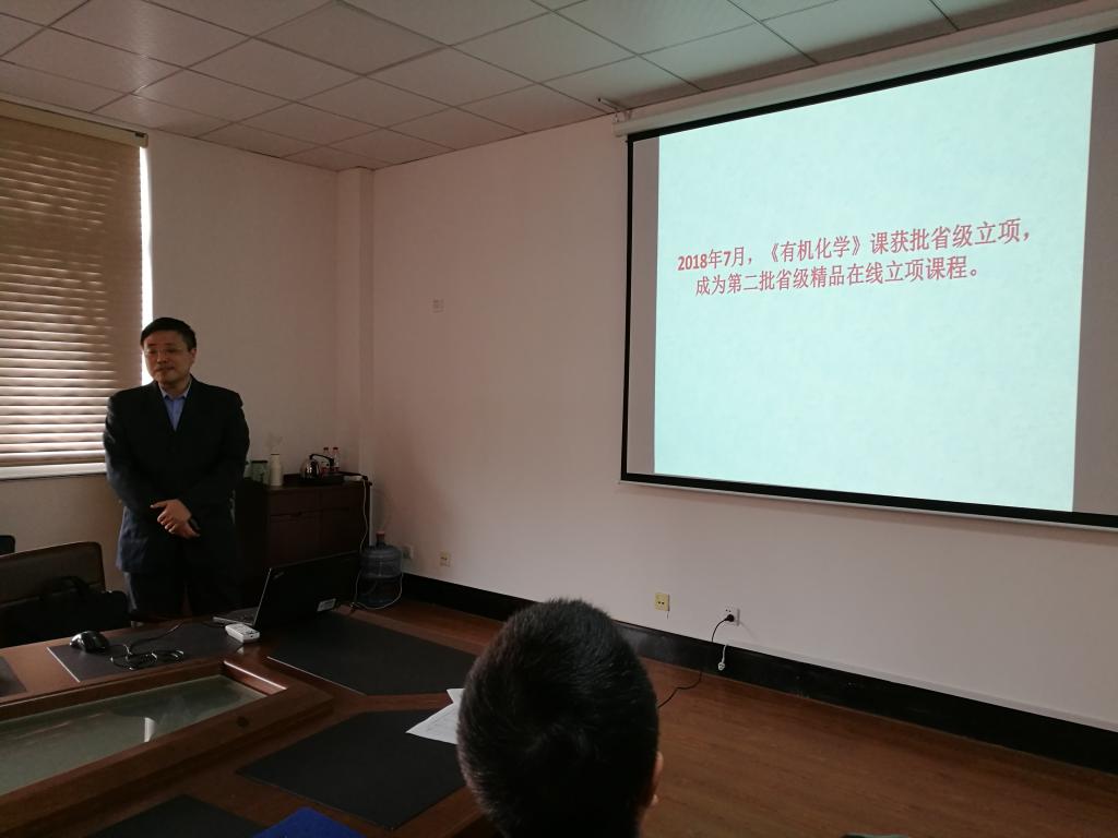 ​永利65335com有机化学课程组组长杨义文老师以《有机化学》课程为例,主要从申报书的撰写、慕课的拍摄、网站的维护与使用等方面交流了自己在精品在线开放课程申报与建设方面的经验。随后​永利65335com的优秀青年教师代表邱观音生老师以自己的亲身经历做了一个题为“青年教师如何处理好教学和科研的关系”的简短发言。