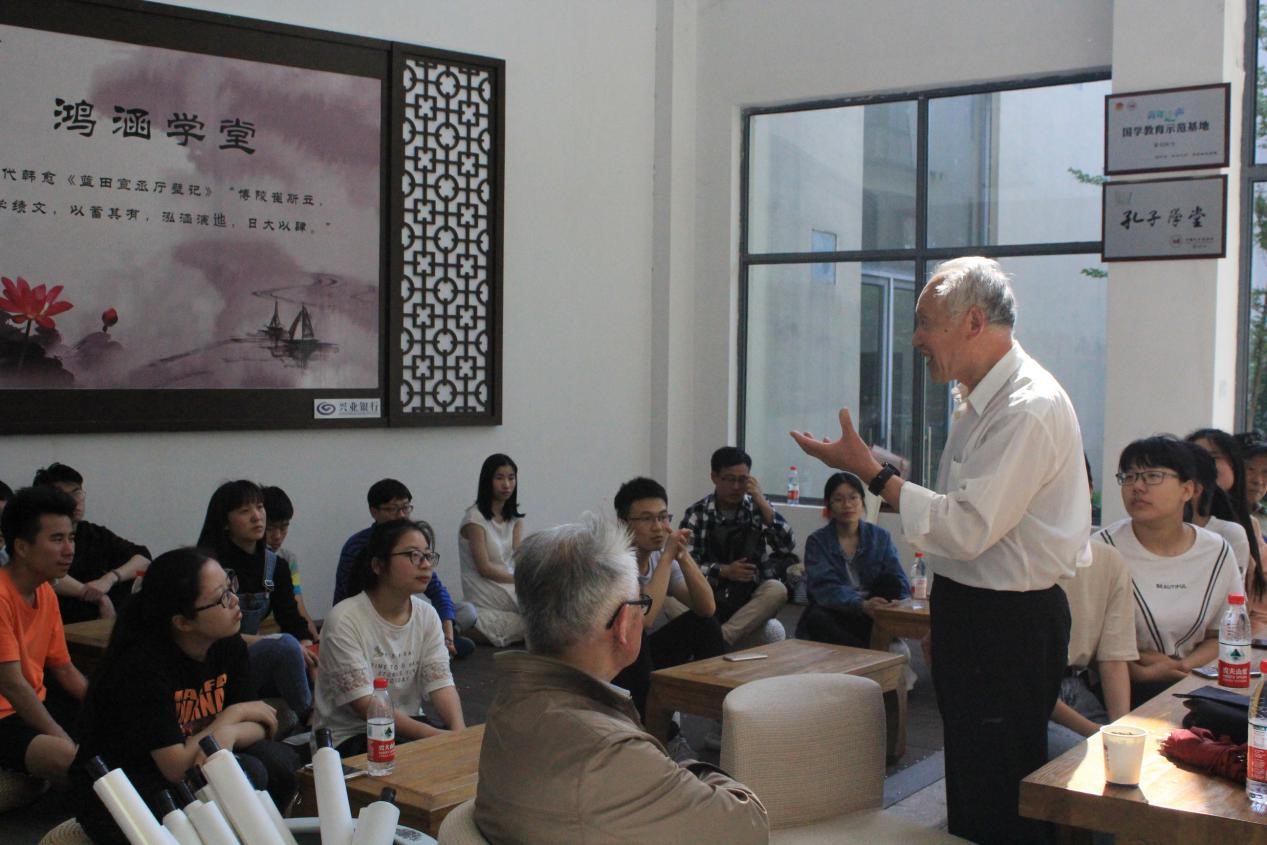 201853日下午,​永利65335com忘年交社团在员工活动中心欢聚一堂,通过人生互换的讨论形式迎接五四运动99周年。嘉兴市新四军协会季雨、张志宏、黄涛略、曹继、康随应五位老爷爷到场,嘉兴公司书画协会部分同学到场参加。