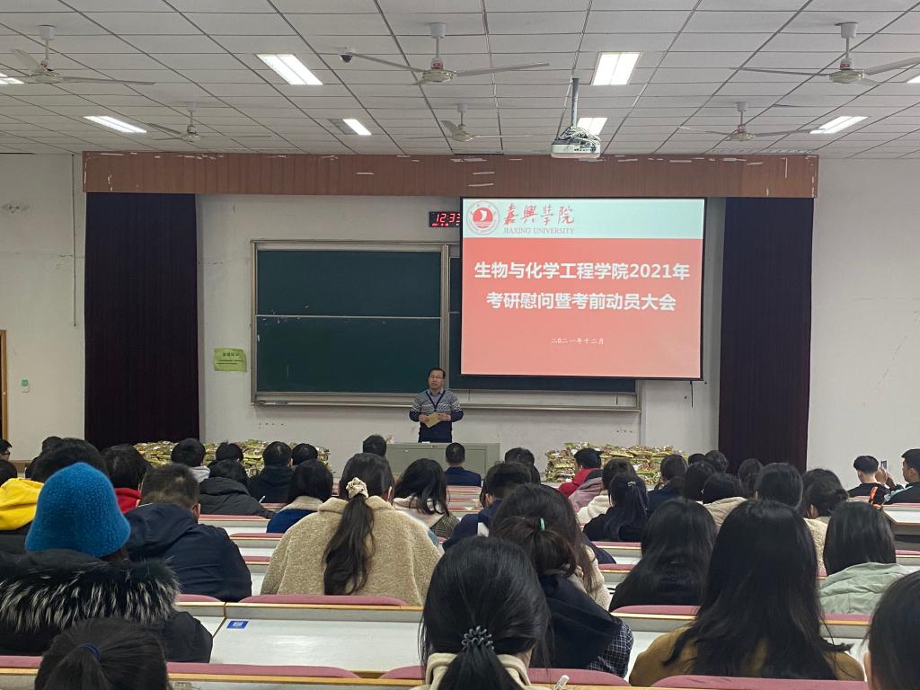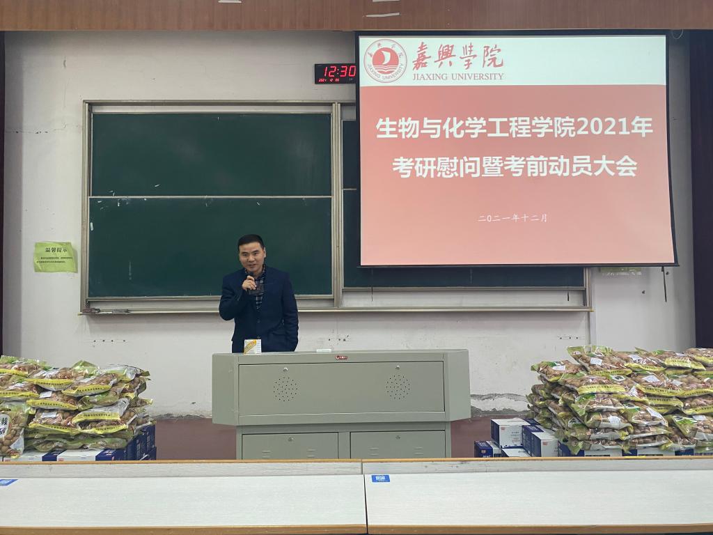 126日中午,​永利65335com在13号楼报告厅召开了2021年考研慰问暨考前动员大会。公司经理曹雪波教授出席并作动员讲话,党委副书记蔡运男主持会议,考研班主任、学工办辅导员以及2018级考研学子等共计200余人参加动员会。