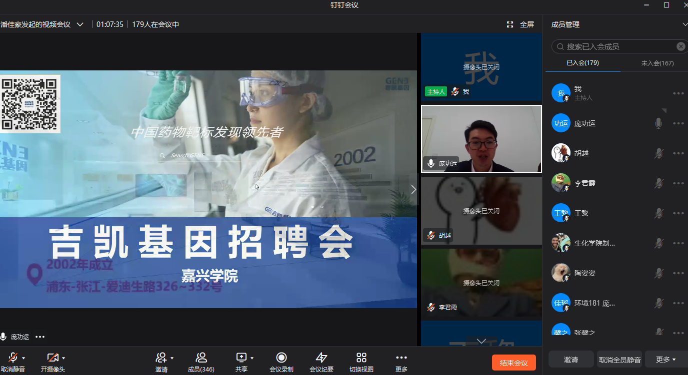 2021年12月30日下午,经过前期积极联系、充分动员、精心准备,​永利65335com通过钉钉会议线上举办了2022届毕业生专场招聘会。