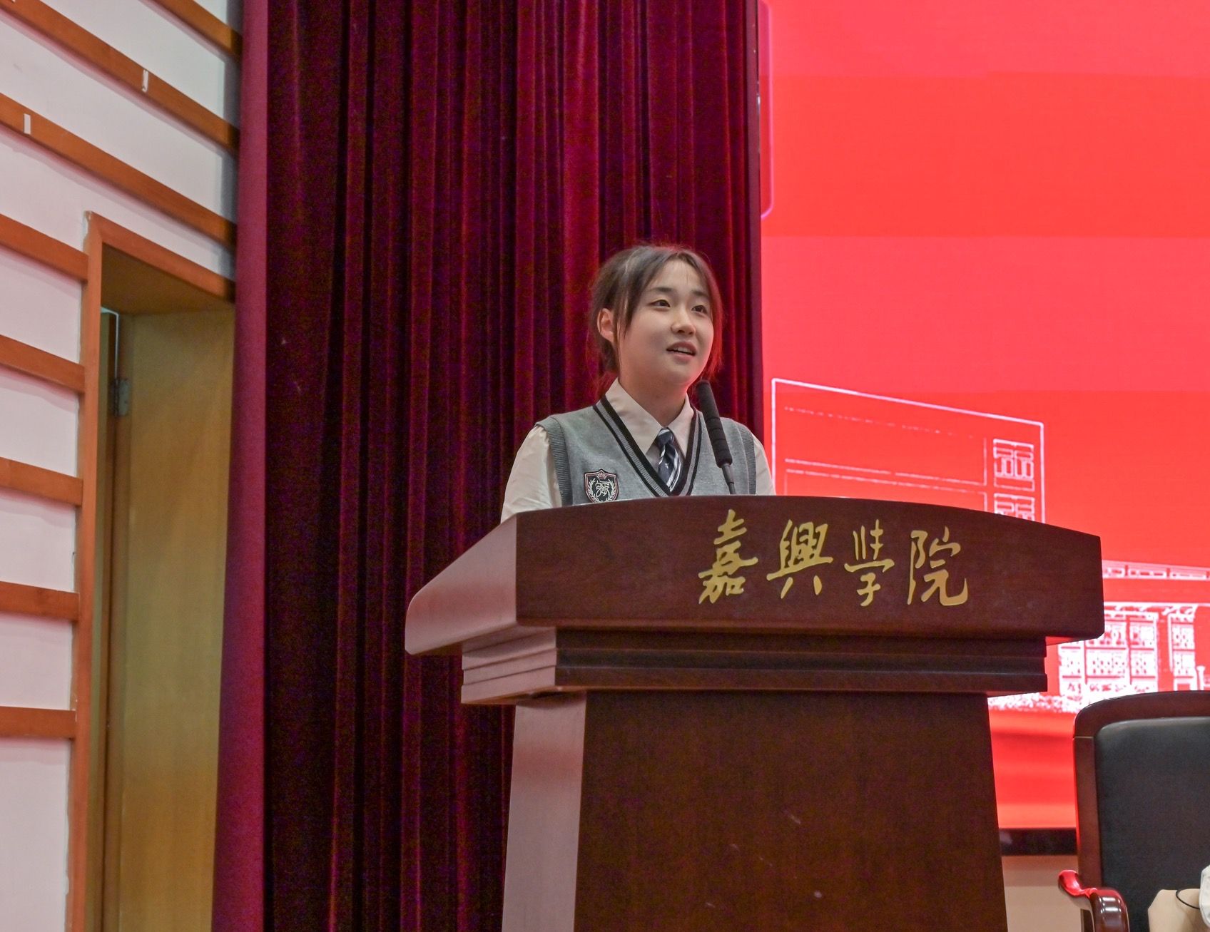 材料与化工专业23级研究生薛磊扬、应化国际231班董鑫雨、生物211班钱梦佳分别代表研究生、新生、老生进行发言。他们表示将从红船精神中汲取信仰的力量、奋进的力量、创新的力量,努力争做自信自强、勤勉笃行、追求卓越的强国先锋、“四明”青年。